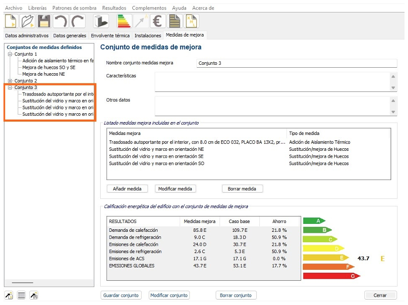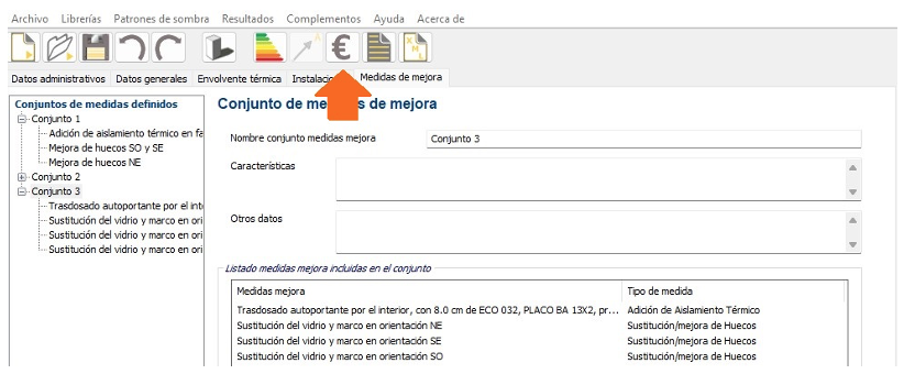Cada uno de los complementos permite definir medidas de mejora con productos reales de cada empresa que los comercializa. Además al ser productos que se encuentran en el mercado, el complemento también calcula el coste económico de las medidas definidas. Un dato que posteriormente será necesario para realizar el análisis económico de la mejora propuesta.