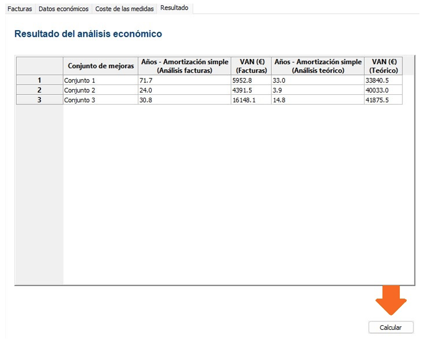 - Resultado: hacemos clic en Calcular y CE3X realiza un cálculo basado en las facturas (opcional) y un cálculo teórico (imprescindible). Para ambos casos calcula: